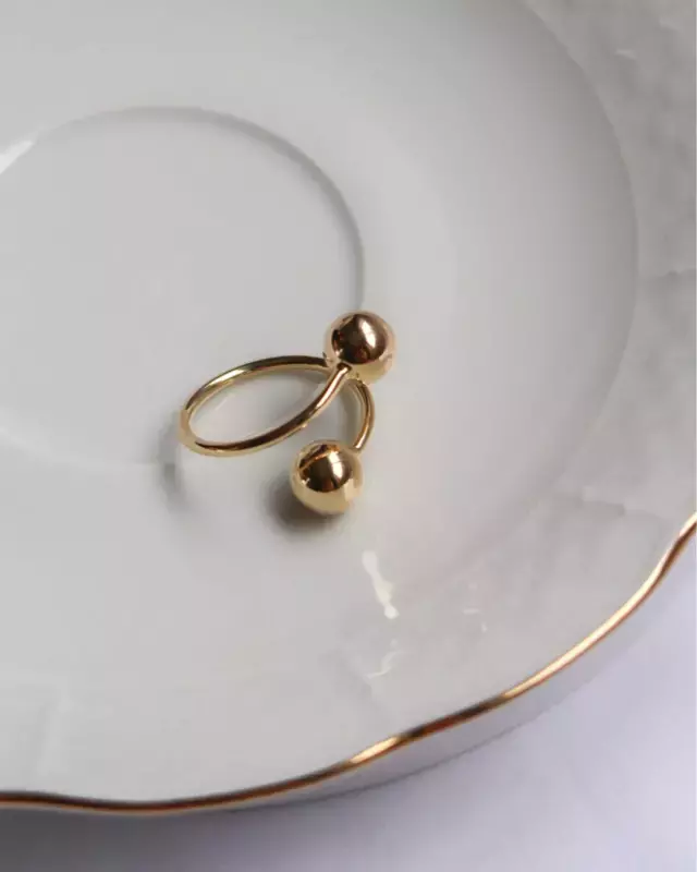 O Anel Amizade apresenta duas esferas douradas que se equilibram em um aro delicado, criando um visual contemporâneo, cheio de significado e versatilidade.
