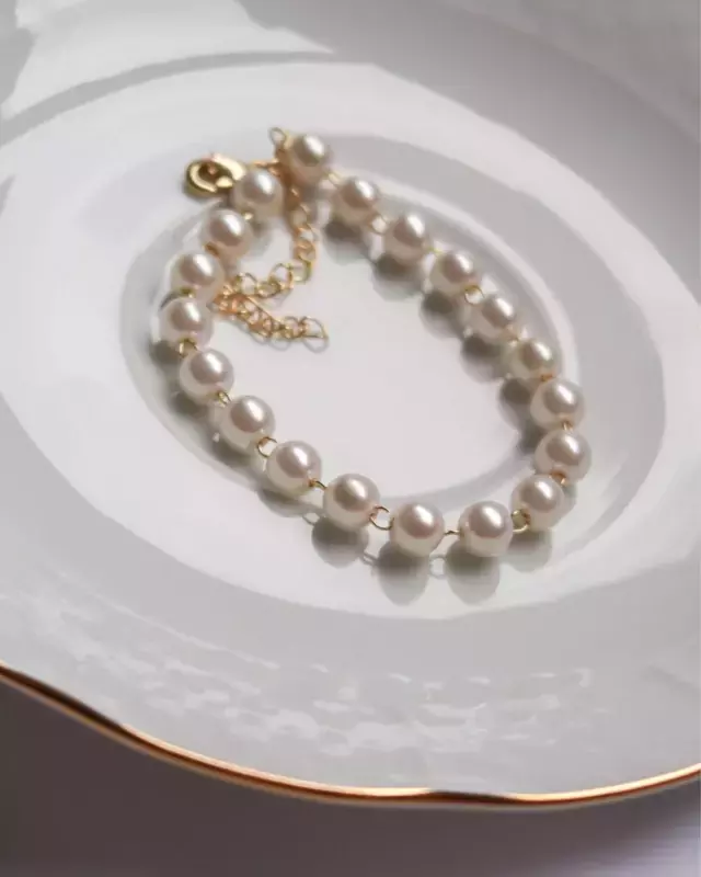 Pulseira em pérolas no banho de ouro 18k hipoalergênica
